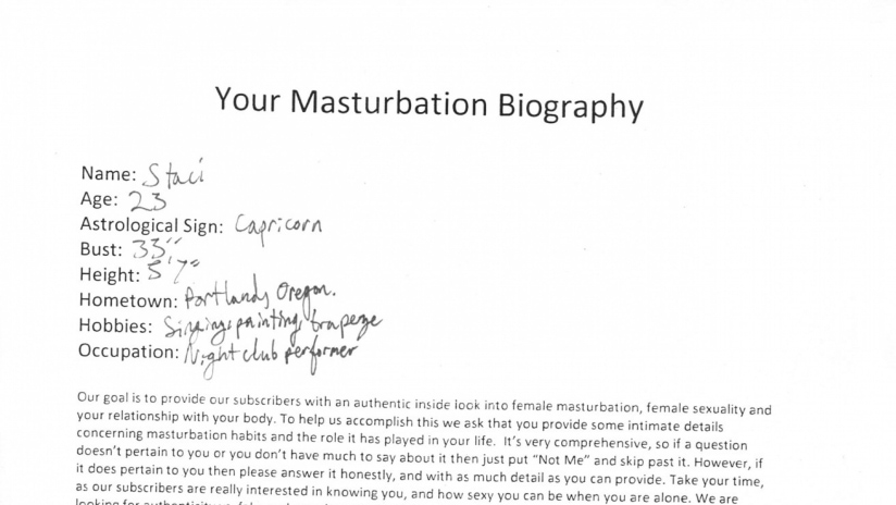 Some of the stories Staci tells are the most unique we've heard. She is absolutely turned on by metal, to the point of masturbating with knives. Not the handle, mind you, but the blade. She claims to be careful and to never have cut her vag, which is very good to hear. Alas, we got a very hot video, but no knives. However, watching Staci get off, however she does it, is a real pleasure.